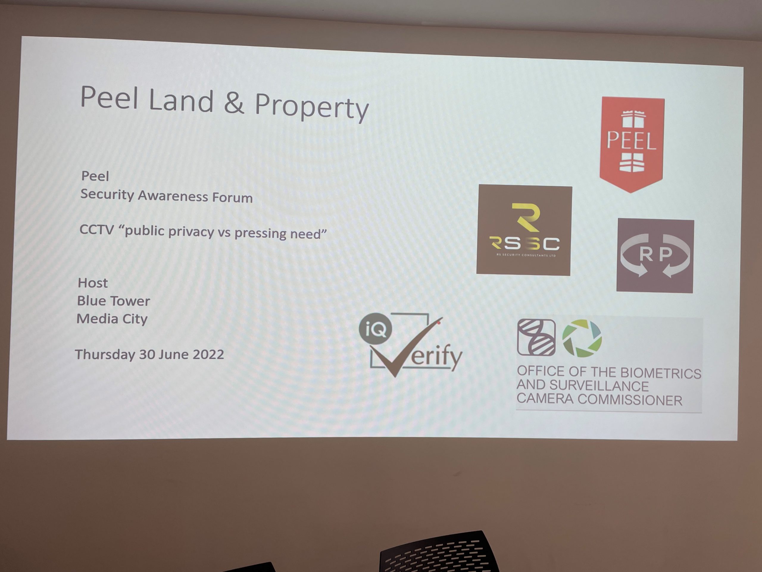 The aim was to engage with the business and public sector community and provide tangible support to the concept of CCTV compliance where public privacy is considered side by side with a system`s intended purpose. Richard, along with Tony Chebrika of Peel L&P, spoke of Peels’ MediaCityUK project, the investment, and decisions they made with this, the challenges it brought, and the benefits it continues to bring daily to all stakeholders of the site. They gave a technical overview of the Peel property portfolio and the highly effective long-term ‘critical friend’ relationship the two businesses share.